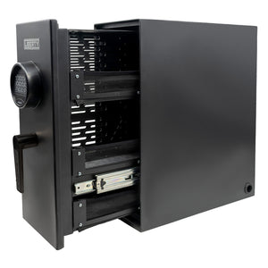 The SecuRam digital lock offers quick and reliable access, while dual locking bars and a tamper-resistant design provide reinforced protection against unauthorized entry. For added portability, the safe comes with a security cable, ensuring it can be securely anchored.